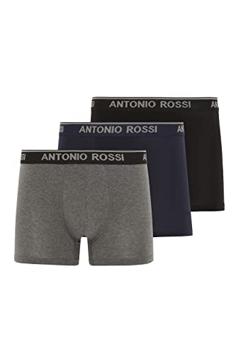 ANTONIO ROSSI (3-Pack) Men's Longline Boxer Shorts, Shorts Multipack with Elastic Waistband, Breathable, Soft Boxers for Everyday Wear, Cotton Rich, Comfortable Underwear, Black, Navy, Grey, L