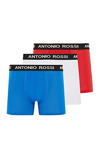 ANTONIO ROSSI (3/6 Pack) Men's Fitted Boxer Hipsters - Mens Boxers Shorts Multipack with Elastic Waistband - Cotton Rich, Comfortable Mens Underwear, Red, Blue, White (3 Pack), XXL