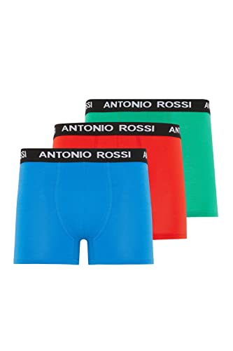 ANTONIO ROSSI (3/6 Pack) Men's Fitted Boxer Hipsters - Mens Boxers Shorts Multipack with Elastic Waistband - Cotton Rich, Comfortable Mens Underwear, Red, Green, Blue (3 Pack), XXL