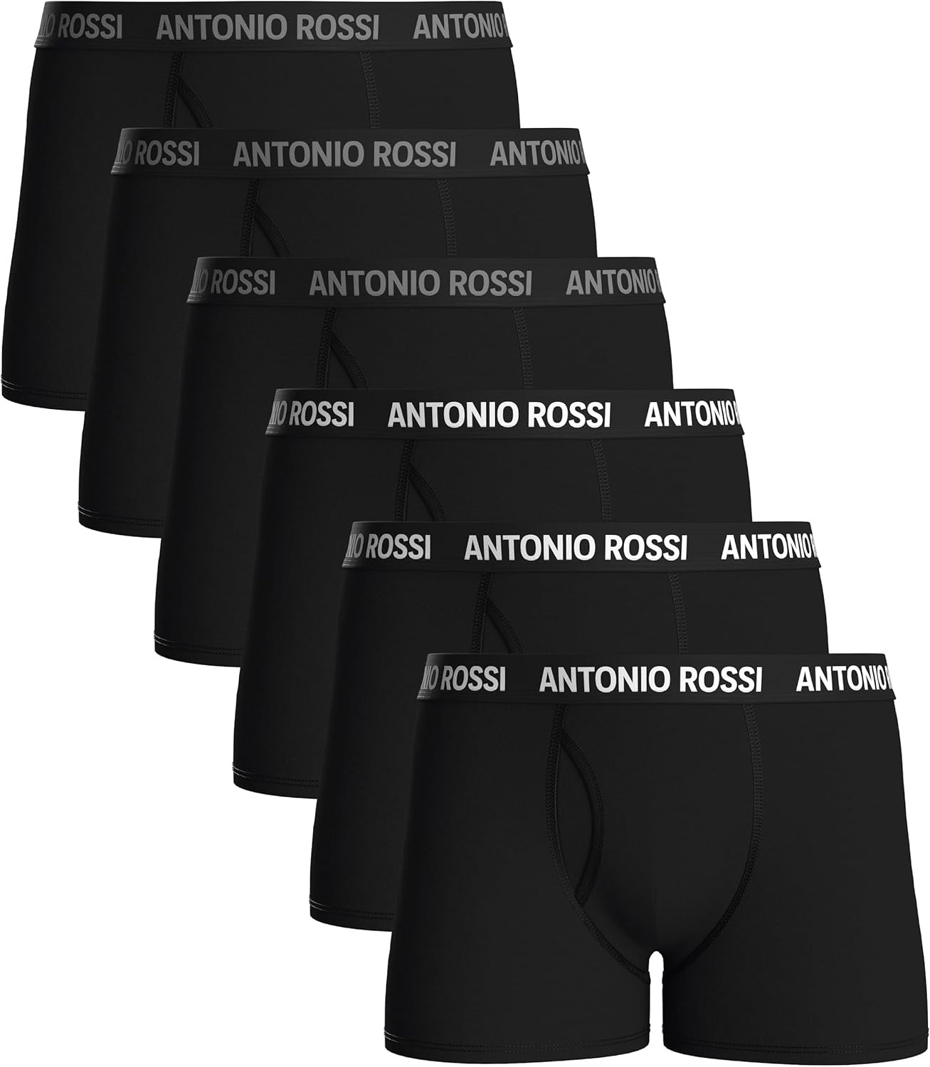 ANTONIO ROSSI (6 Pack Mens Boxers Shorts Open Fly - Keyhole Trunks Fitted Boxer - Super Soft Cotton, No Itchy Labels, Breathable, Moisture Wicking - Men's Underwear Multipack Black