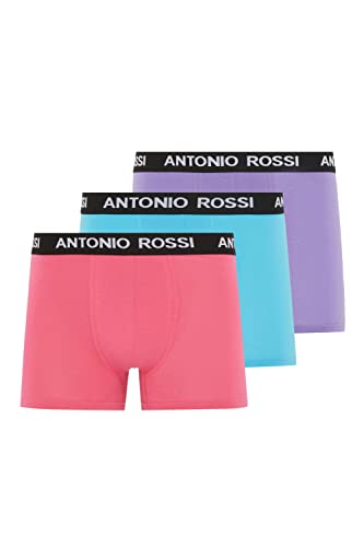 ANTONIO ROSSI (3/6 Pack) Men's Fitted Boxer Hipsters - Mens Boxers Shorts Multipack with Elastic Waistband - Cotton Rich, Comfortable Mens Underwear, Purple, Pink, Blue (3 Pack), S