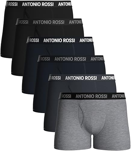 ANTONIO ROSSI 6-Pack Mens Boxers Shorts Open Fly - Keyhole Trunks Fitted Boxer - Super Soft Cotton, No Itchy Labels, Breathable, Moisture Wicking - Men's Underwear Multipack