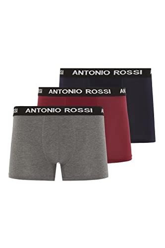 ANTONIO ROSSI (3/6 Pack) Men's Fitted Boxer Hipsters - Mens Boxers Shorts Multipack with Elastic Waistband - Cotton Rich, Comfortable Mens Underwear, Grey, Burgundy, Navy (3 Pack), S