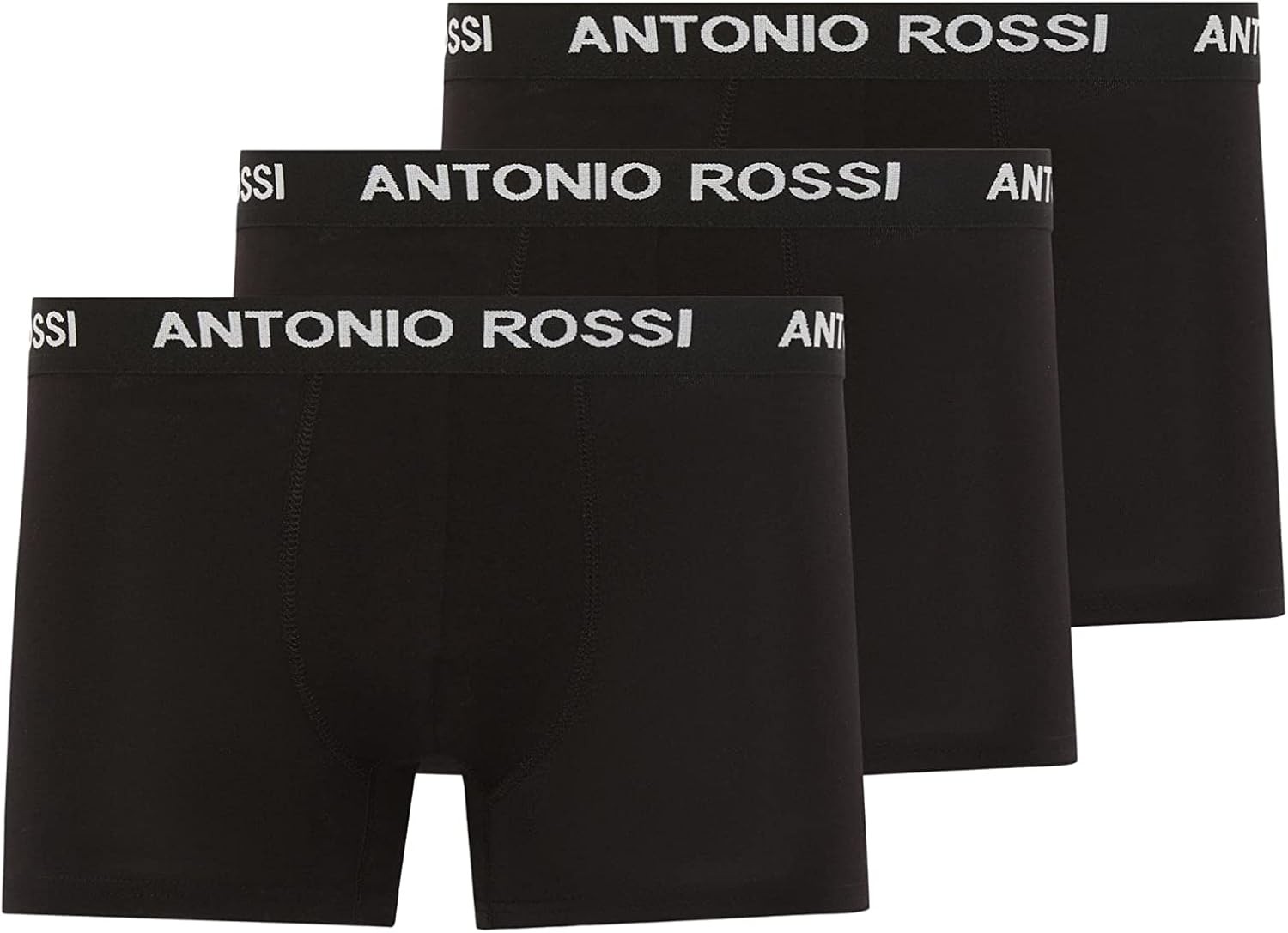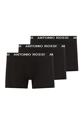 ANTONIO ROSSI (3/6 Pack) Men's Fitted Boxer Hipsters - Mens Boxers Shorts Multipack with Elastic Waistband - Cotton Rich, Comfortable Mens Underwear, Black with White Writing (3 Pack), XL