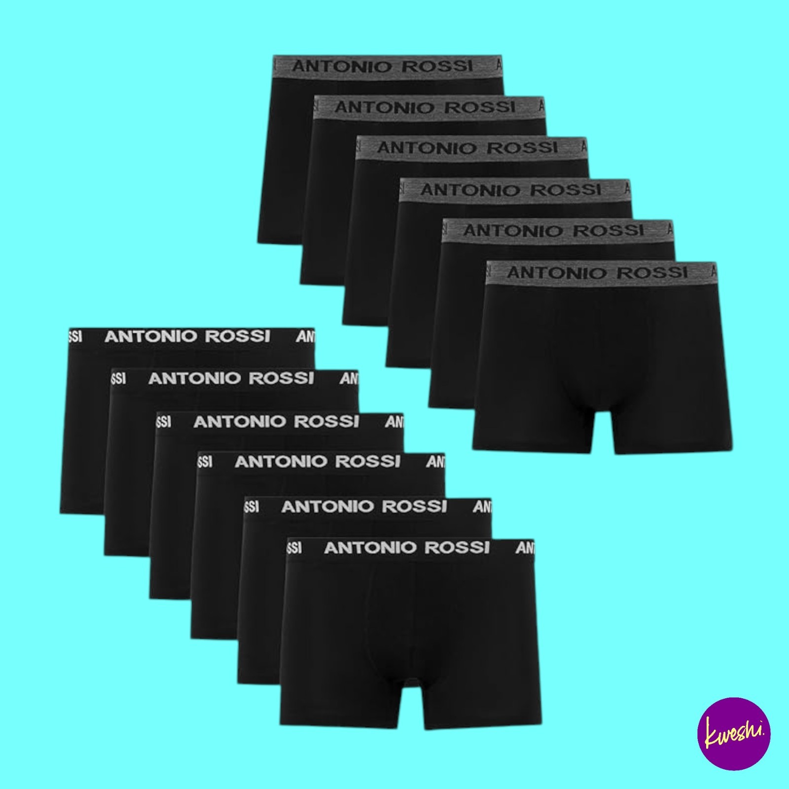 ANTONIO ROSSI Men’s Stretch Hipster Boxers 12‑Pack, Fitted Trunks, Black, UK 3XL