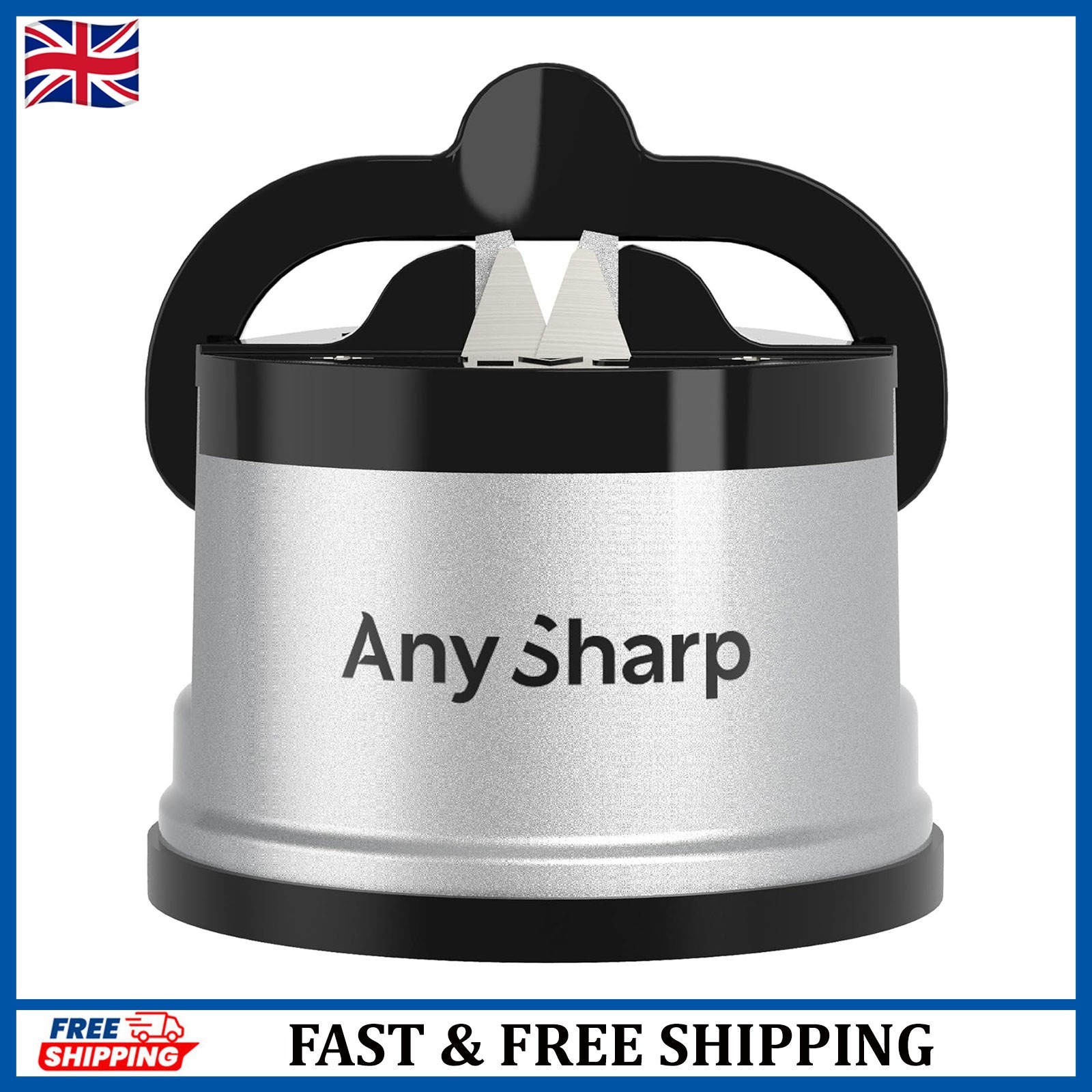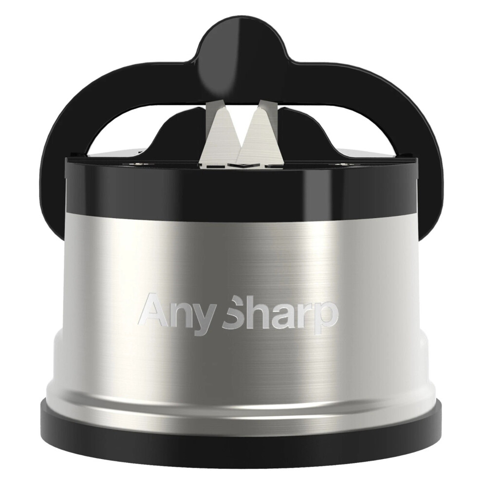 AnySharp Knife Sharpener, Hands-Free Safety, PowerGrip Suction, Safely Sharpens All Kitchen Knives, Ideal for Hardened Steel & Serrated, World's Best, Compact, One Size, Silver