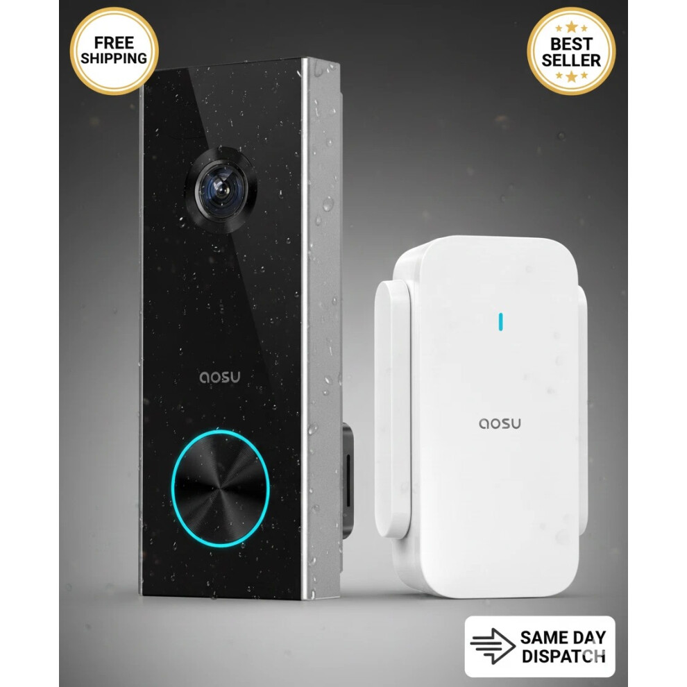 Aosu 2K Wireless Video Doorbell With Chime Battery Powered Wide Angle WiFi