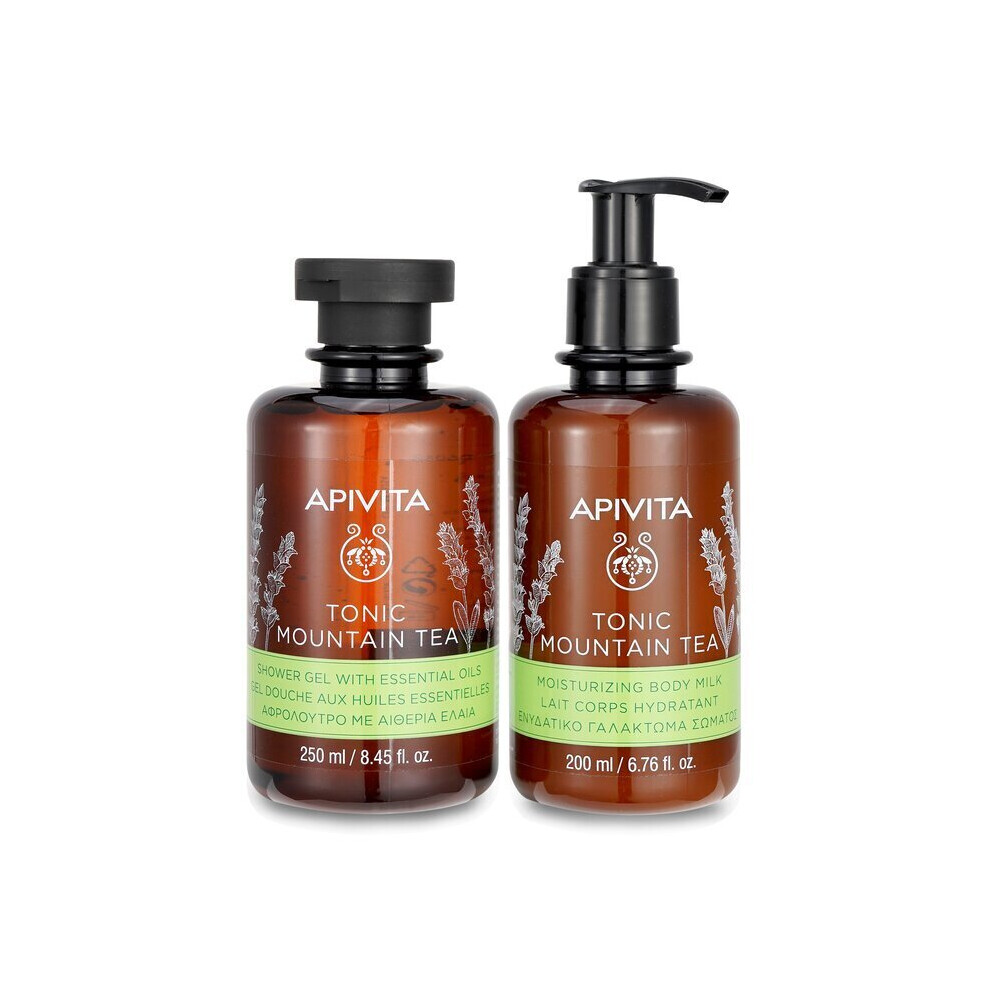 Apivita Uplift Your Mood Toning & Revitalization Set: Tonic Mountain Tea Shower Gel 250ml+ Tonic Mountain Tea Body Milk 2pcs