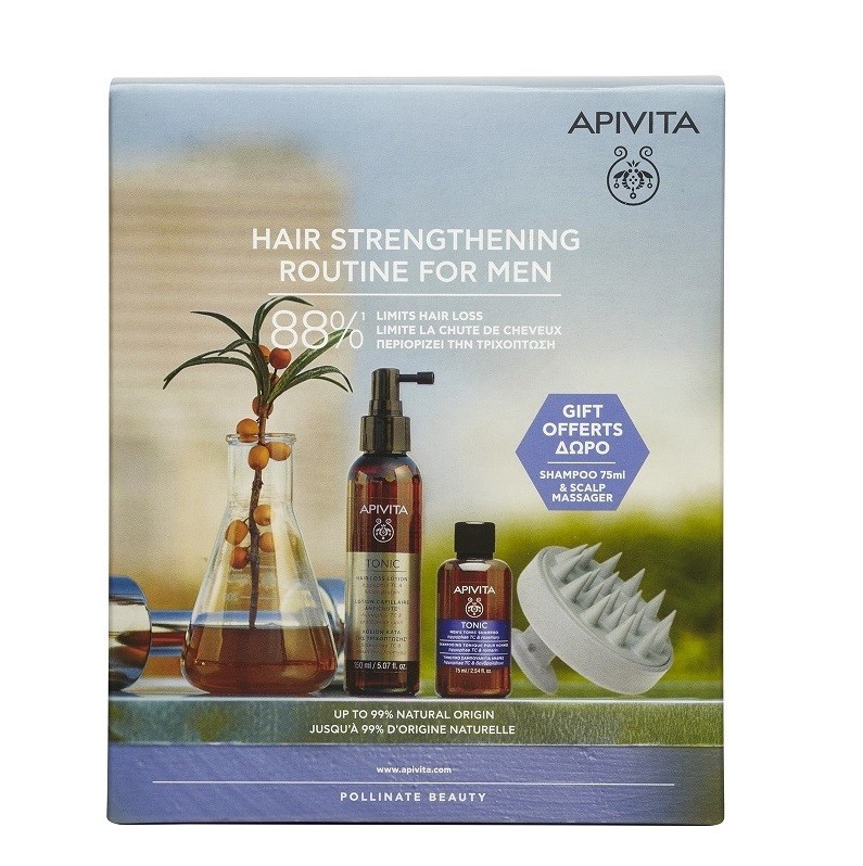 Apivita Hair Strengthening Routine for Men Tonic Hair Loss Lotion 150 ml + 2 Gif