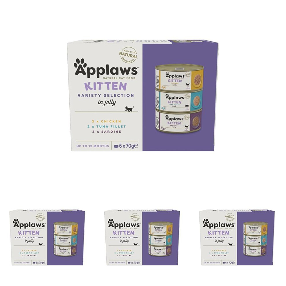 Applaws Natural Cat Food, Kitten Multipack Chicken and Fish Selection in Jelly Tin, 6 x 70 g (Pack of 4)