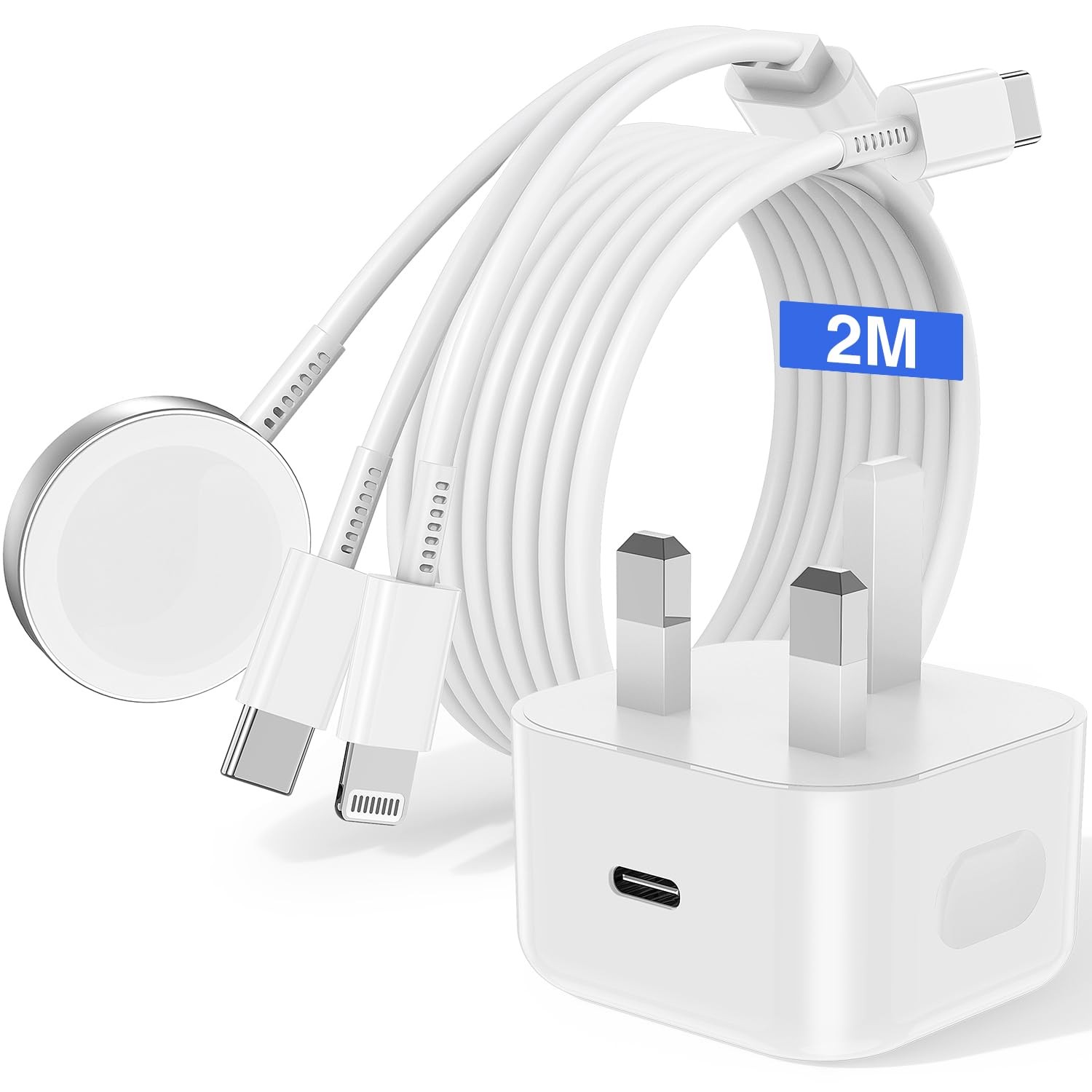 Apple Watch Charger USB C for iPhone and iWatch, 3-in-1 2M Fast Charging Cable with 20W Fast Wall Charger for Apple Watch Series 9/8/7/6/5/SE iPhone 17/16/15/14/13/12/iPad/AirPods