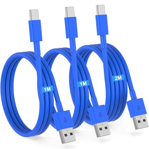USB to USB C Charger Cable Fast Charging for IPhone 15/16/17,3Pack [1M+1M+2M] Apple USB C Carplay Cable Type C Car Charger Cord for iPhone 17 16 15 Pro Max/16 15 Plus/17 Air,iPad,Galaxy S25 S24-Blue