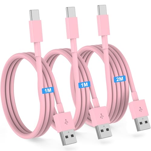 USB to USB C Charger Cable Fast Charging for IPhone 15/16,3Pack [1M+1M+2M] Apple USB C Carplay Cable Type C Car Charger Cord for iPhone 17 16 15 Pro Max/16 15 Plus/17 Air,iPad,Galaxy S25 S24 S23-Pink