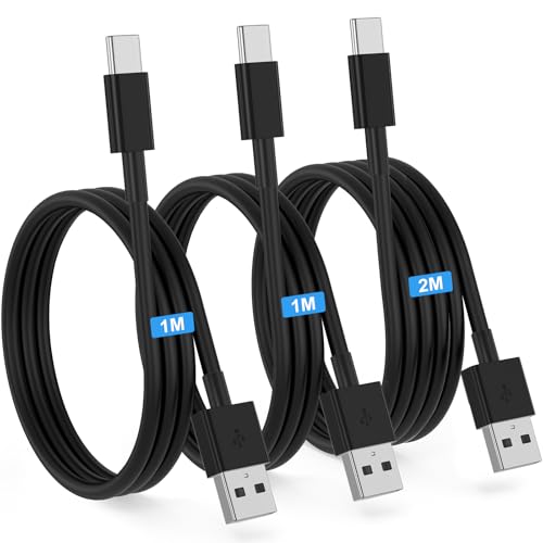 USB to USB C Charger Cable Fast Charging for IPhone 15/16/17,3Pack [1M+1M+2M] Apple USB C Carplay Cable Type C Car Charger Cord for iPhone 17 16 15 Pro Max/16 15 Plus/17 Air,iPad,Galaxy S25 S24-Black