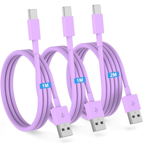 USB to USB C Charger Cable Fast Charging for IPhone 15/16/17,3Pack [1M+1M+2M] Apple USB C Carplay Cable Type C Car Charger Cord for iPhone 17 16 15 Pro Max/16 15 Plus/17 Air,iPad,Galaxy S25 S24-purple