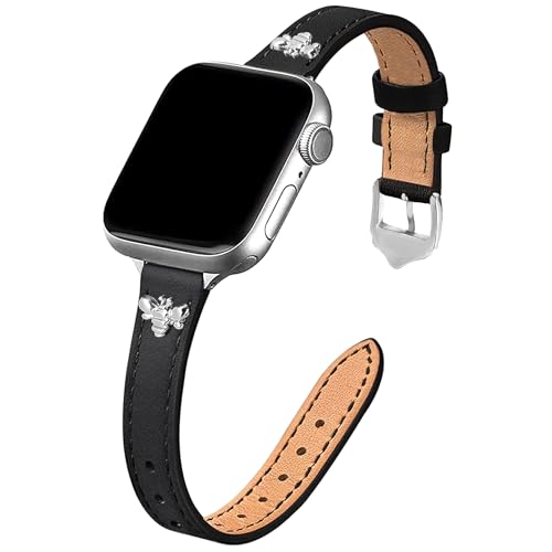 JR.DM Slim Leather Straps Women Compatible with Apple Watch 38mm 40mm 41mm 42mm 44mm 45mm 46mm 49mm Top Genuine Leather Watch Strap with Charms for iWatch Series 10/9/8/7/6/5/4/3/2/1/SE/Ultra1 2