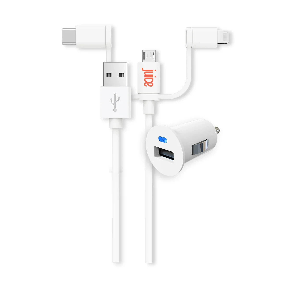 Juice 5W Car Charger With 1m Multi Connector Cable - Apple, USB-C, Micro USB