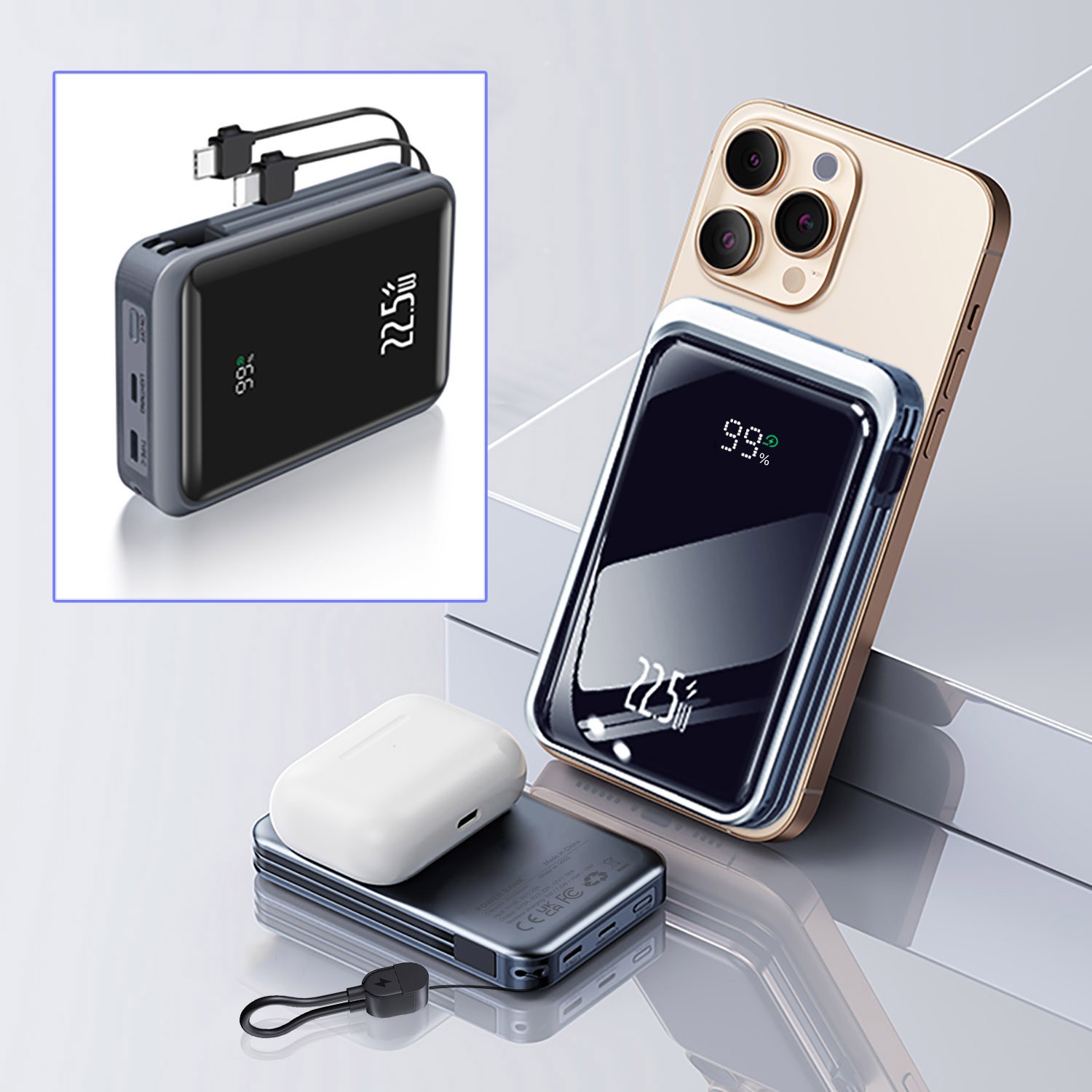 Wireless Portable Charger with LED Display, Nano Adsorption and 22.5W Fast Charging for Apple Devices