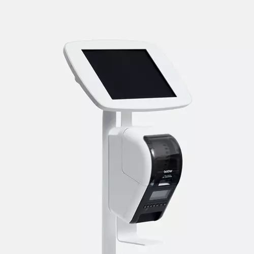 Bouncepad Floorstanding with Brother Printer Mount and Branding Board (inc USB Cable) | Exposed Front Camera and Home Button | White | Apple iPad Air 6th Gen 11-inch (2024)