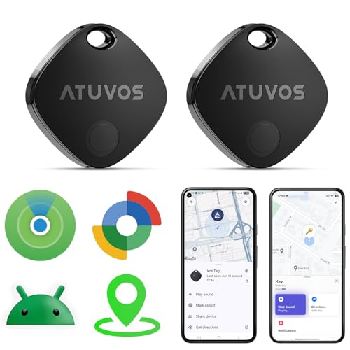 ATUVOS Dual System Air Tracker Tag PRO 2 Pack, Smart Key Finder Works with Android Google Find Hub or iOS Apple Find My APP, Bluetooth Item Locator for Luggage, Suitcase, Bags