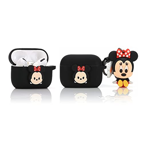 Derhom Airpods Pro Silicone Case Funny Cute Fashion Soft Cartoon Cover Skin Compatible for Apple Airpods Pro [Cartoon Belt Doll Series] (Minnie)