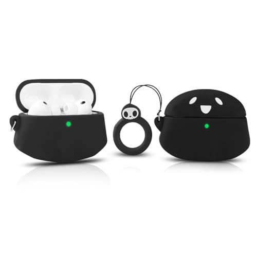 LEWOTE Case Compatible with Apple Airpods Pro 3 Protective Funny Cute Cartoon Slim Cover with Keychain (Ghost Black)