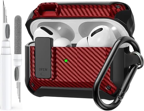 for Airpods Pro 3 Case with Lock Clip, Rugged Apple Airpods Pro 3rd Generation Cover 2025 Men Women, Armor Shockproof iPod Pro3 Gen Protective Hard Shell with Cleaner Kit, Red