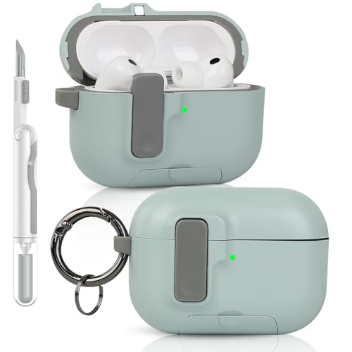 LEWOTE Case Compatible with Apple Airpods Pro 3 Funny Cute Anti-Lost Cover with Hook and Clean Kit[Support Wireless Charging] (Mint Green)