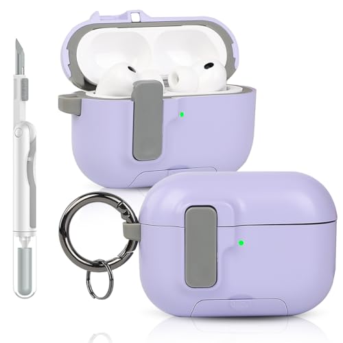 LEWOTE Case Compatible with Apple Airpods Pro 3 Funny Cute Anti-Lost Cover with Hook and Clean Kit[Support Wireless Charging] (Purple)