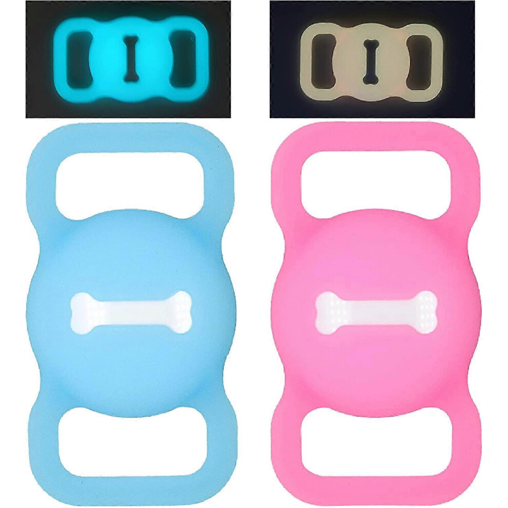 (As show, One size) 2 Pack Pet AirTag Holder for Apple Air Tag Bone Protector Pet Cat Dog Collar Chain AirTag Anti Lost Box (Blue and Bright Pink)