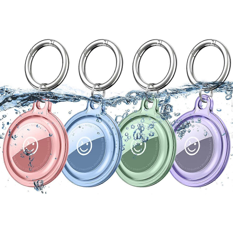 (As show, One size) 4-piece watch case compatible with Apple Airtag keyring (multi color), 4-piece waterproof Airtag holder with keychain, TPU silicon