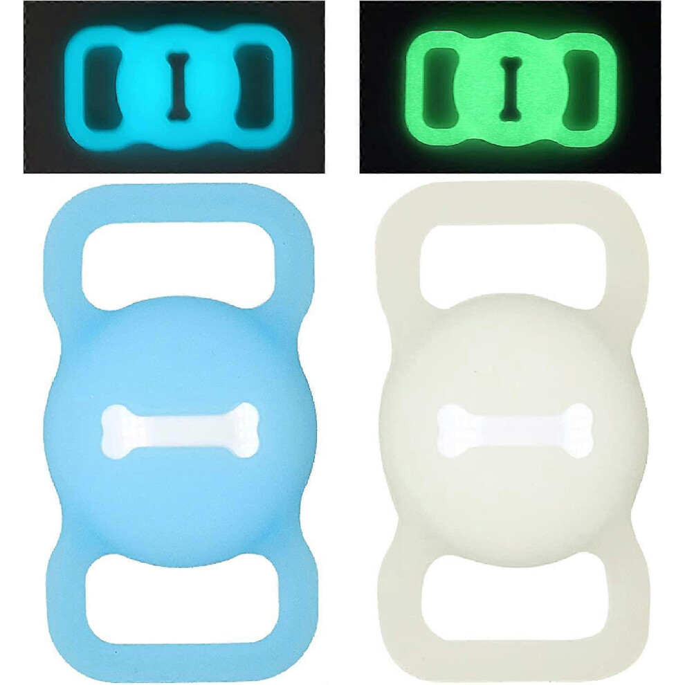 (As show, One size) 2 Pack Pet AirTag Holder for Apple Air Tag Bone Protector Pet Cat Dog Collar Chain AirTag Anti Lost Box (Luminous Blue and Green)