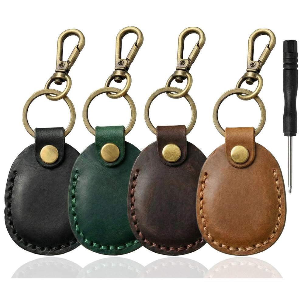 For Air Tags-4 Pack Keyring Holder-Genuine Leather Case for Apple Airtag. Pack 1,Handmade for Airtags 4 Pack Keyrings Suitable for Apple Air