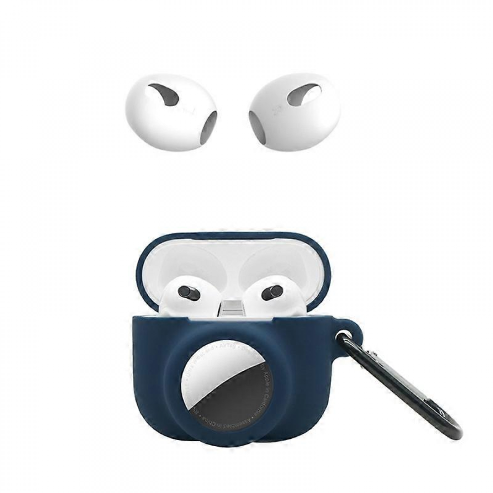 (Multicolor, Midnight Blue) For Apple AirPods 3 + for AirTag 2-in-1 Silicone Protective Cover Drop-proof Dust-proof Case with Ca
