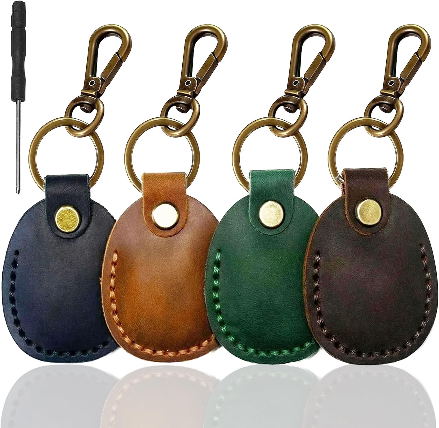 For Air Tags-4 Pack Keyring Holder-Genuine Leather Case for Apple Airtag. Pack