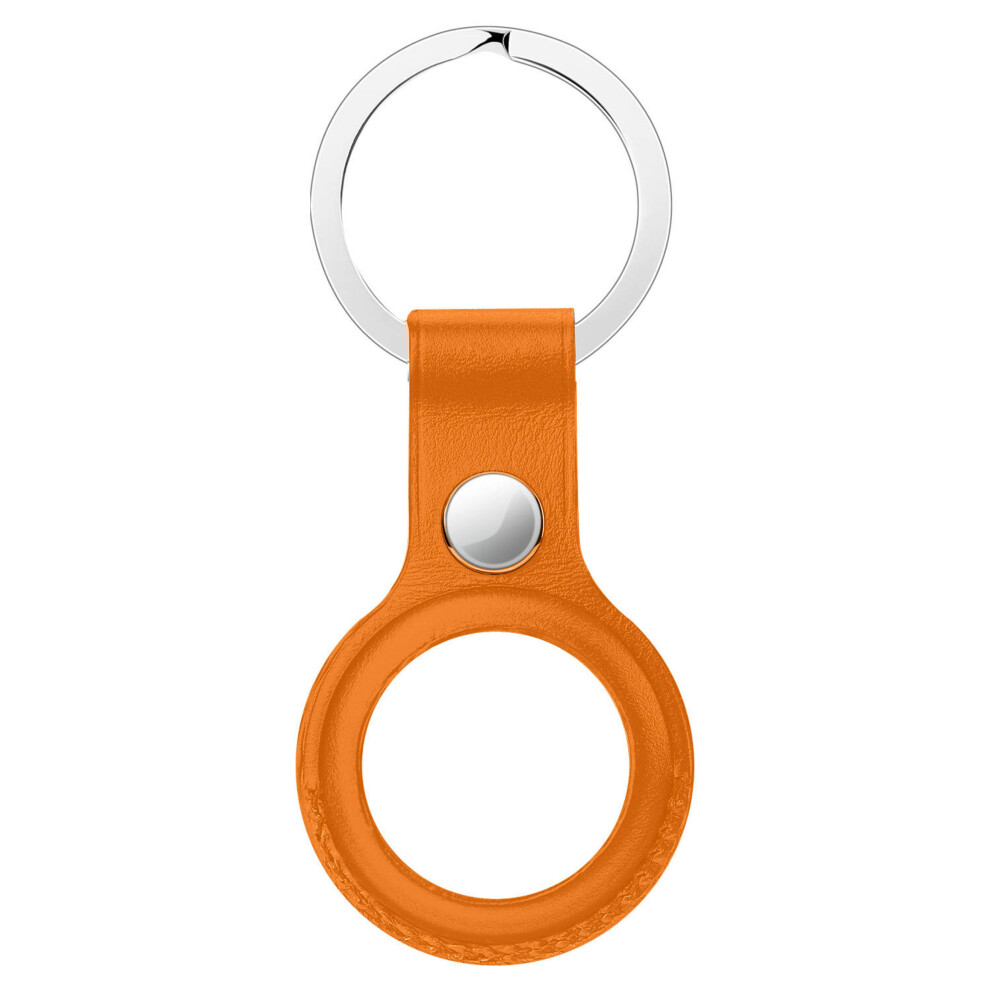 (Orange) AirTag Case Vegan Leather Protective Holder / Cover with Keyring For Apple AirTag