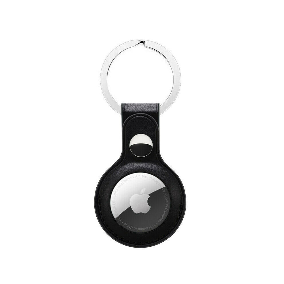 (Black) AirTag Case Vegan Leather Protective Holder / Cover with Keyring For Apple AirTag