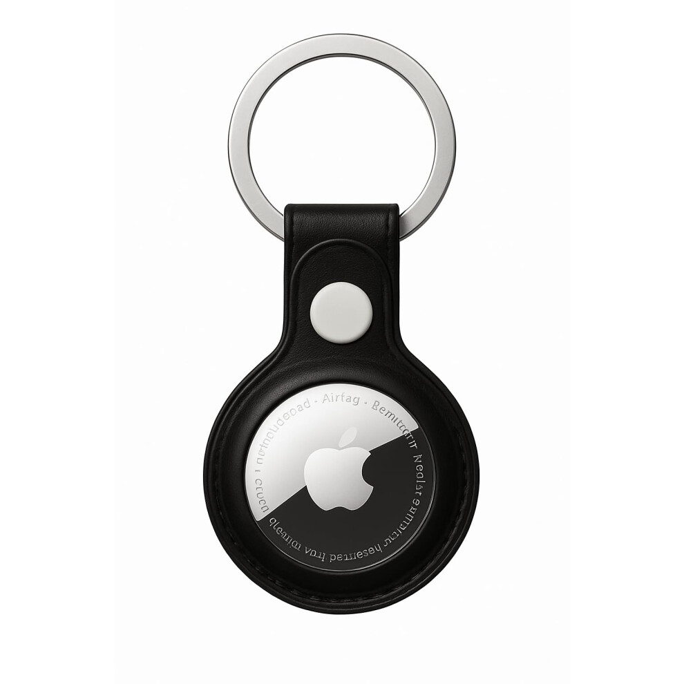 Genuine Leather AirTag Keyring Holder for Apple AirTags. Anti-Lost, Scratch-Resistant Secure Key Ring Case for Key, Dog/Cat Collar, Luggage, Bag. Protective Air Tag Keychain Cover Accessory (Black)