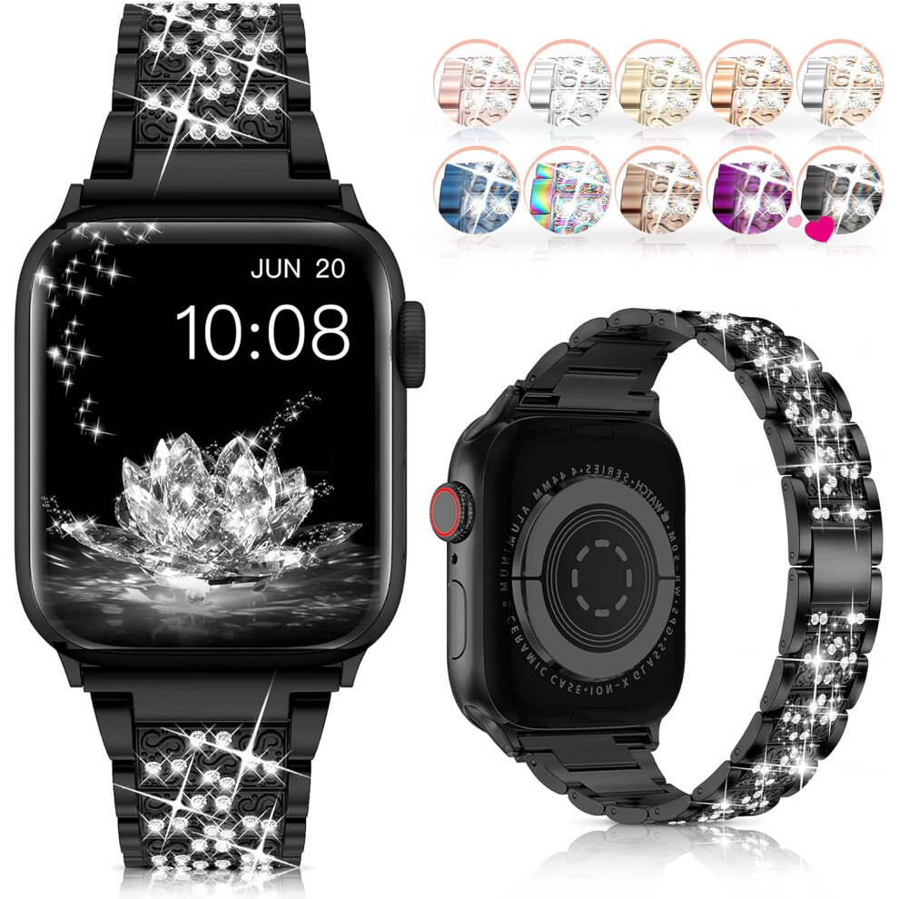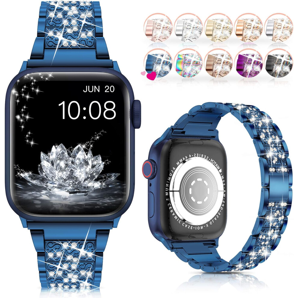DZTXYP crystals and cowboy Metal chains compatible for Apple Watch Bracelet Bands with Bling Protective case 38mm 40mm 41mm 42mm 44mm 45mm Iwatch Seri
