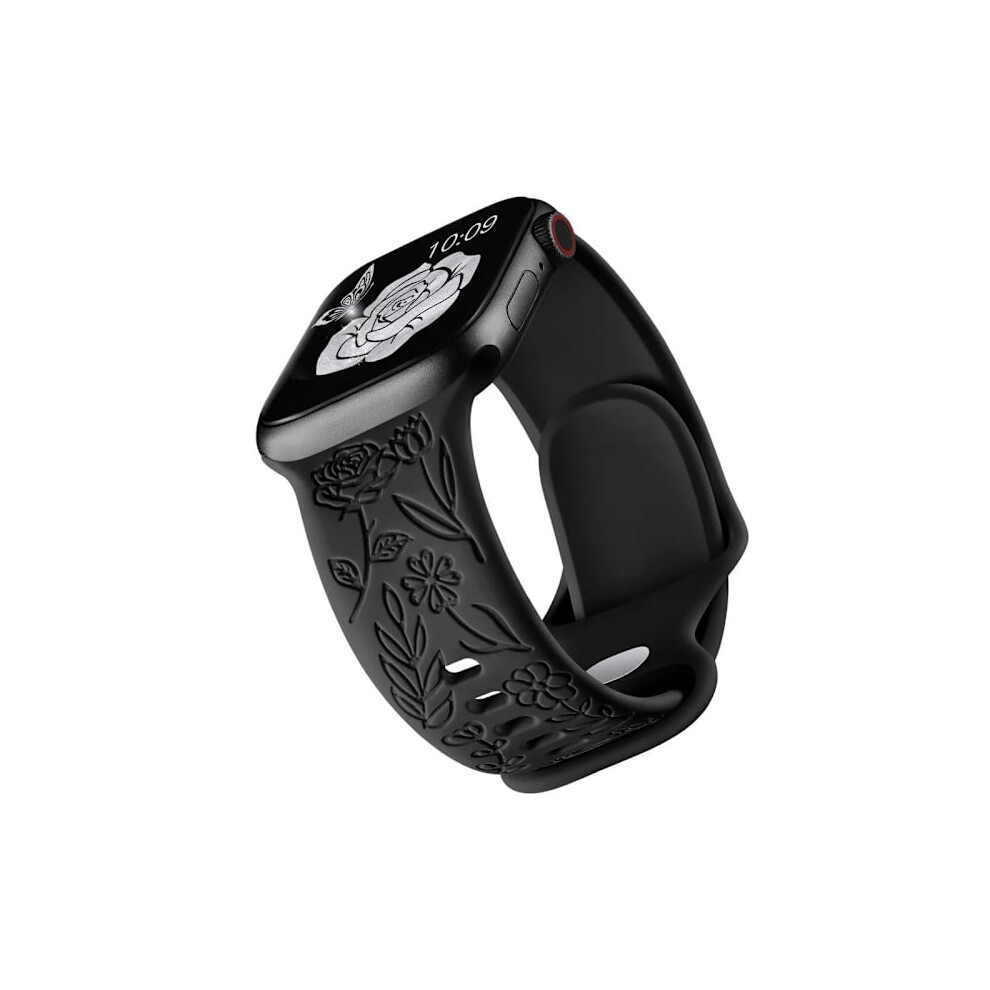 Fits iwatchS9 876SE compatible with Apple Watchwith Apple Watch bracelet embossed small rose silicone Rose - black 38/40/41mm