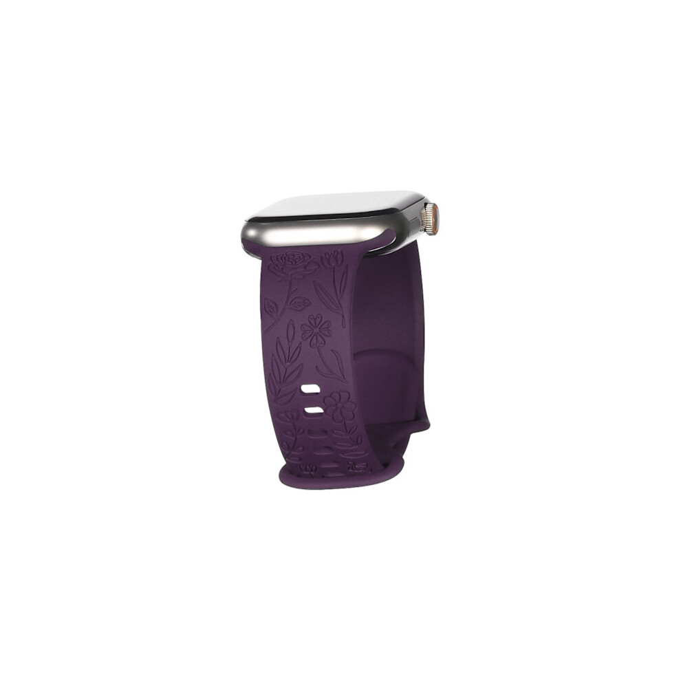 Fits iwatchS9 876SE compatible with Apple Watchwith Apple Watch bracelet embossed small rose silicone Rose - dark purple 38/40/41mm