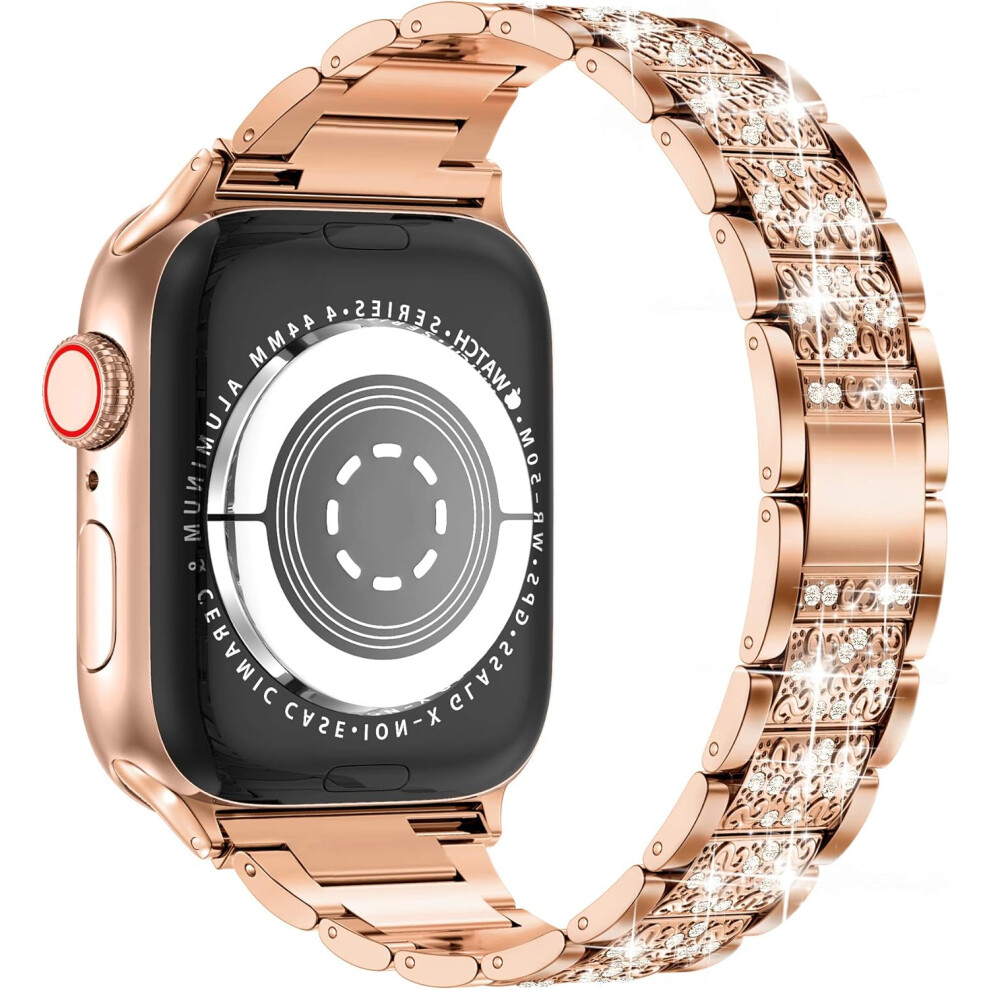 wutwuk Apple Watch 9 Strap 41 mm Gold Women's Compatible with Bracelet Apple Watch 9 8 7 41 mm Diamond Rhinestone Hard PC Protective Frame Ultra Thin Protective Case Women