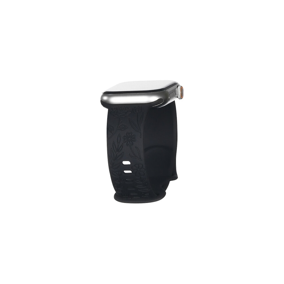 Floral Engraved Strap Compatible with Apple Watch Bracelet 38mm 40mm 41mm for Women, Replacement Band for iWatch Series SE 9 8 7 6 5 4 3 2 1, Black