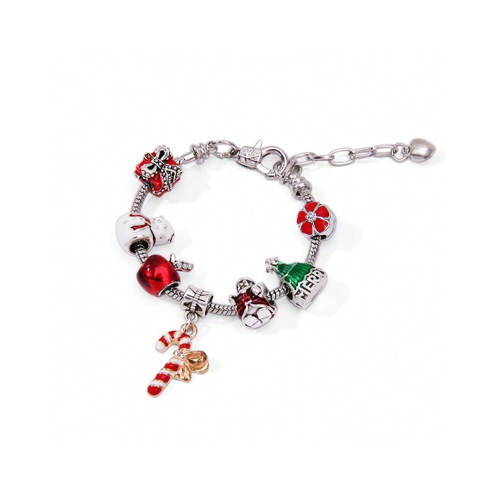 (Bracelet) Christmas gift large hole beads cartoon candy cane snowman apple diy beaded bracelet