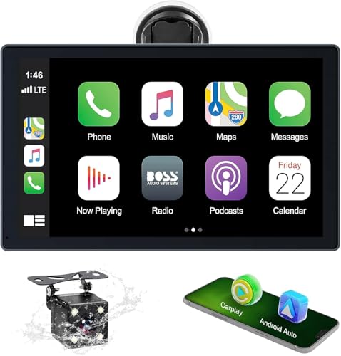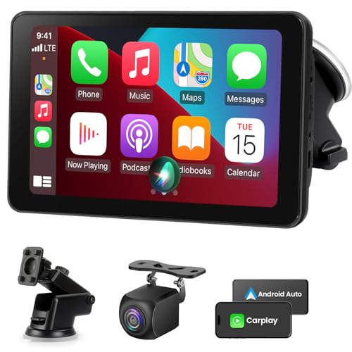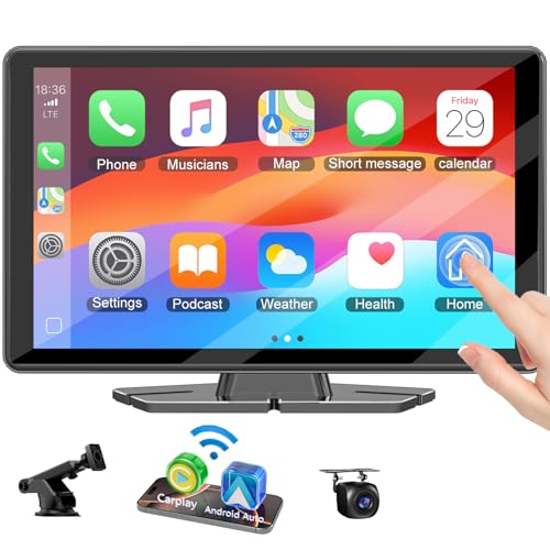 9" Wireless Apple CarPlay Android Auto Screen for Car, 1080P Camera FHD Touch Screen Sat Nav Car Stereo Portable Car Play Mirror Link Music Video Player Siri/AirPlay/AUX/FM/Radio