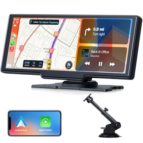 Wireless Apple CarAutoPlay & Android Auto 10 inch Touchscreen Car Monitor Car Stereo, DVR AirPlay and Mirror Link, Car Radio on Dashboard, Bluetooth Calls, Siri Assistant with Rear view Camera