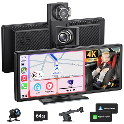 aphqua 10.26'' Wireless Carplay & Android Auto, Apple Car play Screen for Car Tablet with 4K Front & 1080P Rear Camera, GPS, Voice Assistant, Loop Recording, G-Sensor, 64G TF Card
