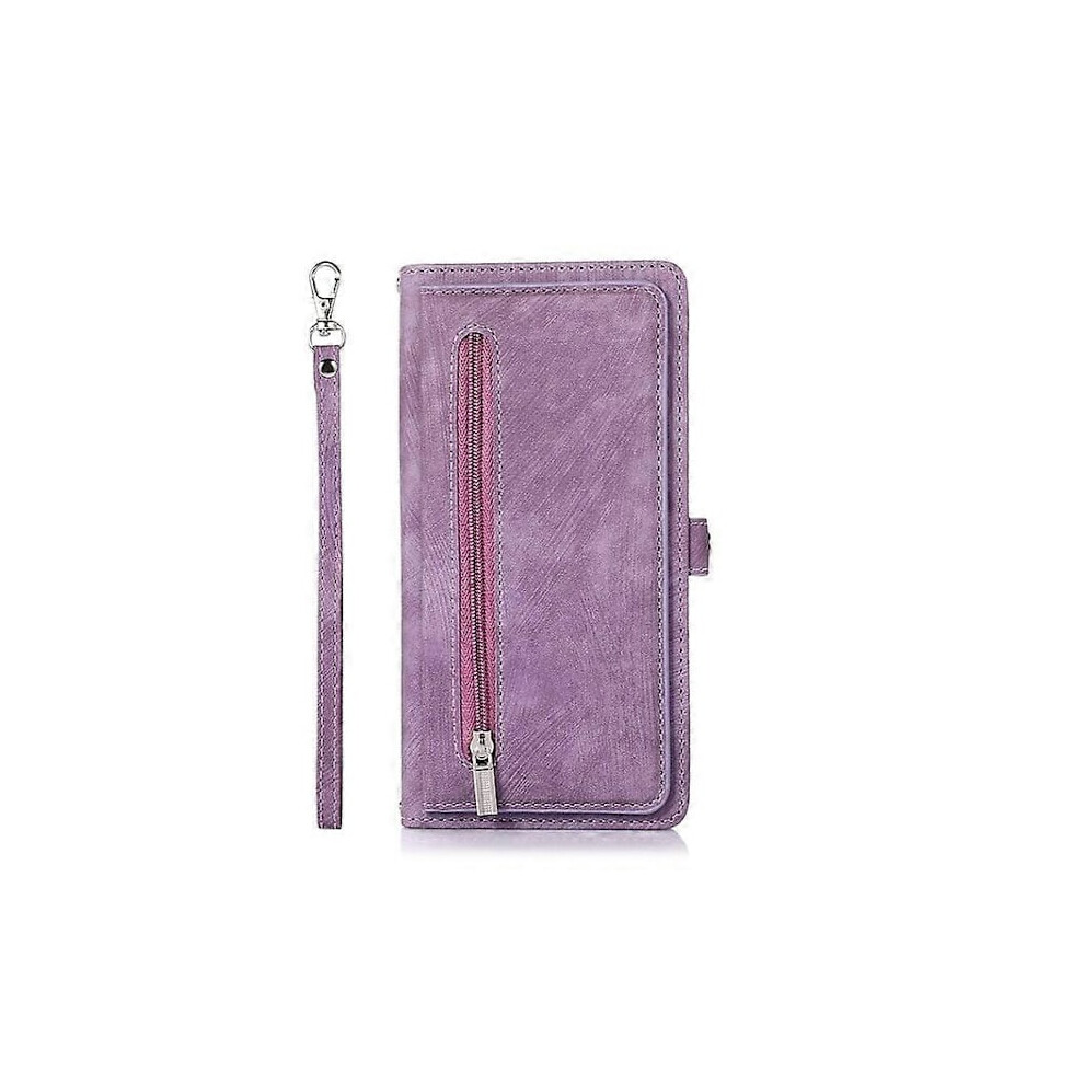 Phone Case compatible with Apple Wallet, Card Holder, Zipper with Wrist Strap, PU Leather for iPhone 14 Pro Max/13/12/11/XR/XS/7/8 - Purple