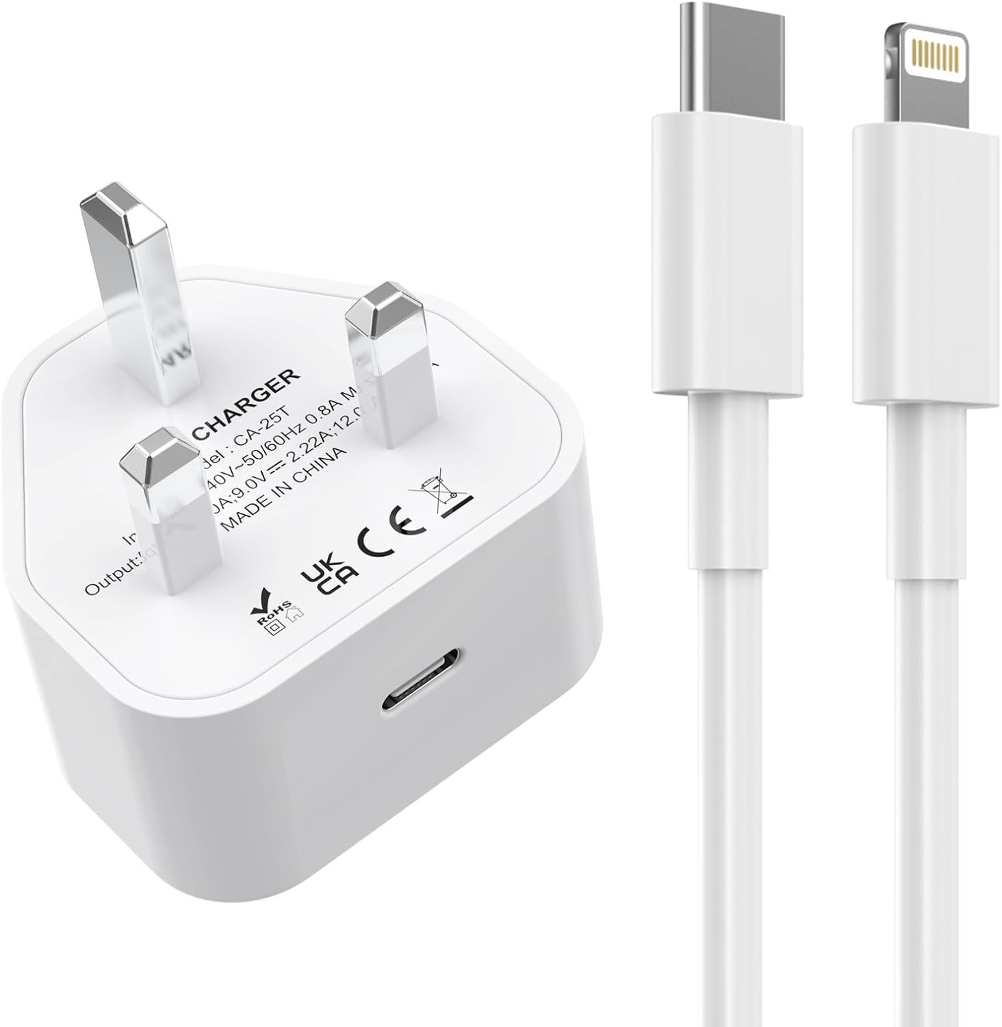 iPhone Charger Fast Charge, 2Pack PD 20W Fast Apple Charger Cable 2M, UK 3.0A iPhone Fast charger Plug with USB C To Lightning Cable for iPhone 14 13 12 11 Pro Max XS XR X 8 7 6 Plus 5, iPad and iPod