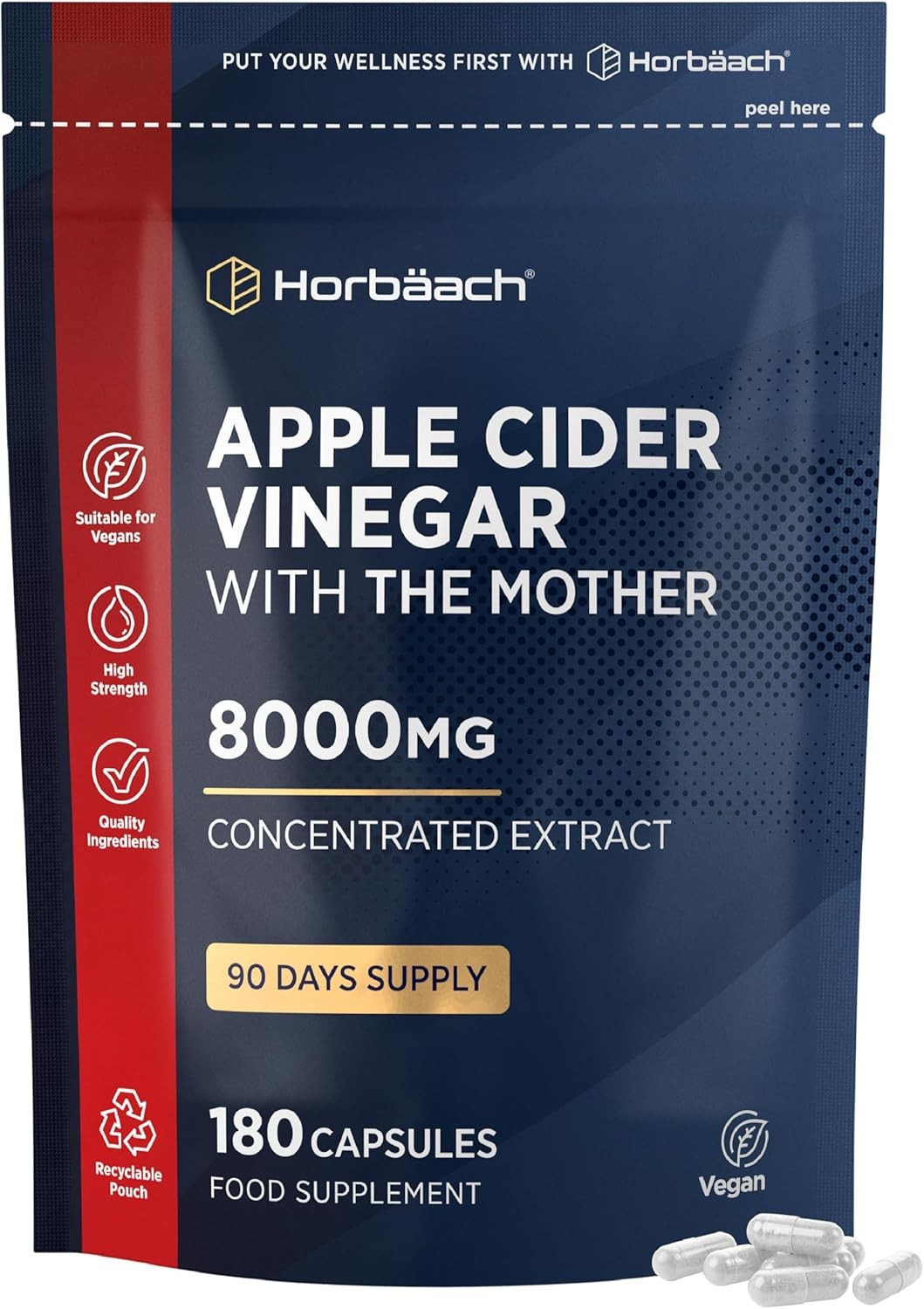 Apple Cider Vinegar Capsules with Mother 8000mg | 3-Month Supply | High Strength ACV | 180 Vegan Capsules (Not Tablets) | by Horbaach